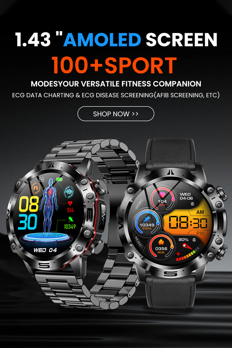 Reloj inteligente resistente al agua Bearscome con control del azúcar en sangre, presión arterial, oxígeno en sangre y sueño
