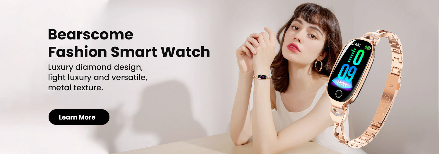 Bearscome Blood Sugar Blood Pressure monitoring Luxury Diamond Design Fashion Smartwatch