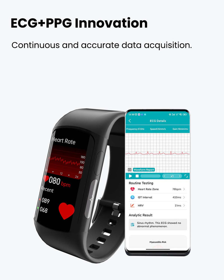 It collects ECG signals anytime and anywhere and can monitor 13 abnormal signals such as atrial fibrillation, bradycardia and arrhythmia ... When there is an abnormal heart rate, the system records abnormal ECG signals, analyzes and diagnoses heart health and makes timely alerts.