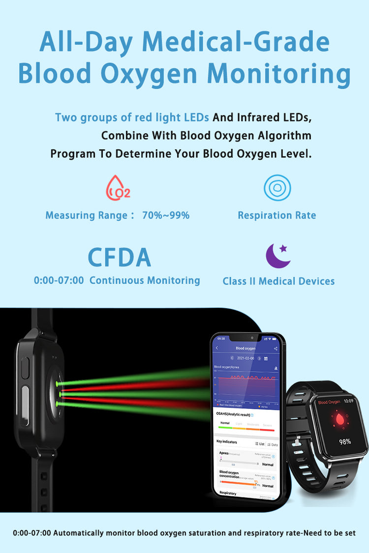 Reloj inteligente deportivo Bearscome CFDA RIG con ECG, monitorización del sueño, oxígeno en sangre y salud