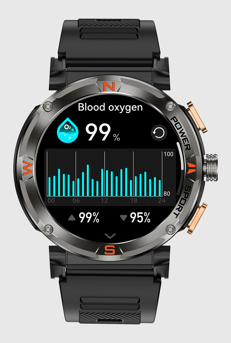 24-hour Health Monitoring. you can monitor your blood-oxygen saturation, heart rate ,Blood pressure,Sleep.