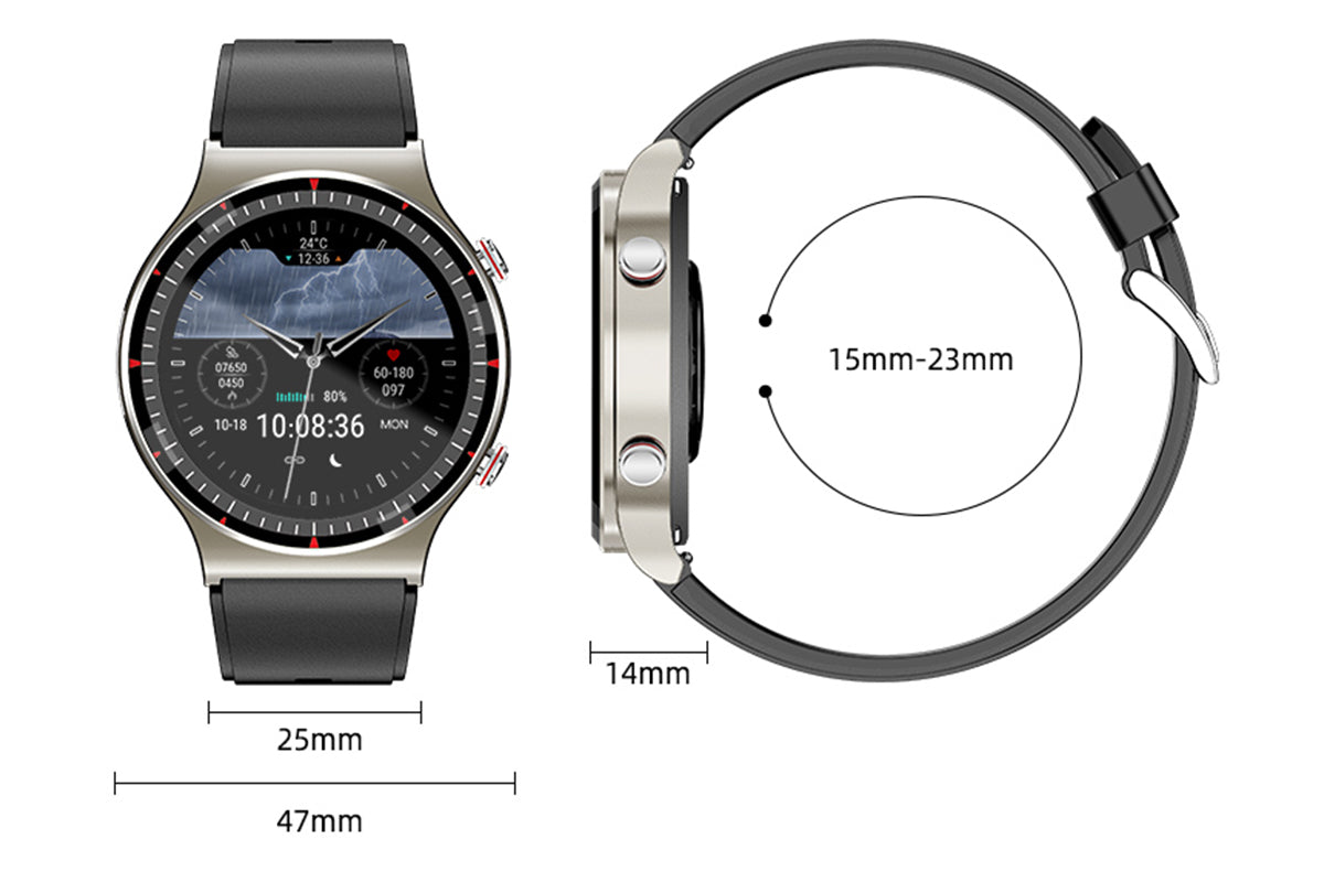 Take an ECG Anytime Anywhere,Your health partner is in your hands Built-in Maxim and OSRAM High-end ECG|SP02|HR chip, The fastest 30S to capture high-precision cardiac electrical signals; 512Hz ECG sampling frequency, Acquisition of I-lead ECG signal. If there is any heart discomfort, activate the emergency mode, Quickly capture and store abnormal ECG signals, view the report through the APP, and export the ECG for sharing. Osram sensors