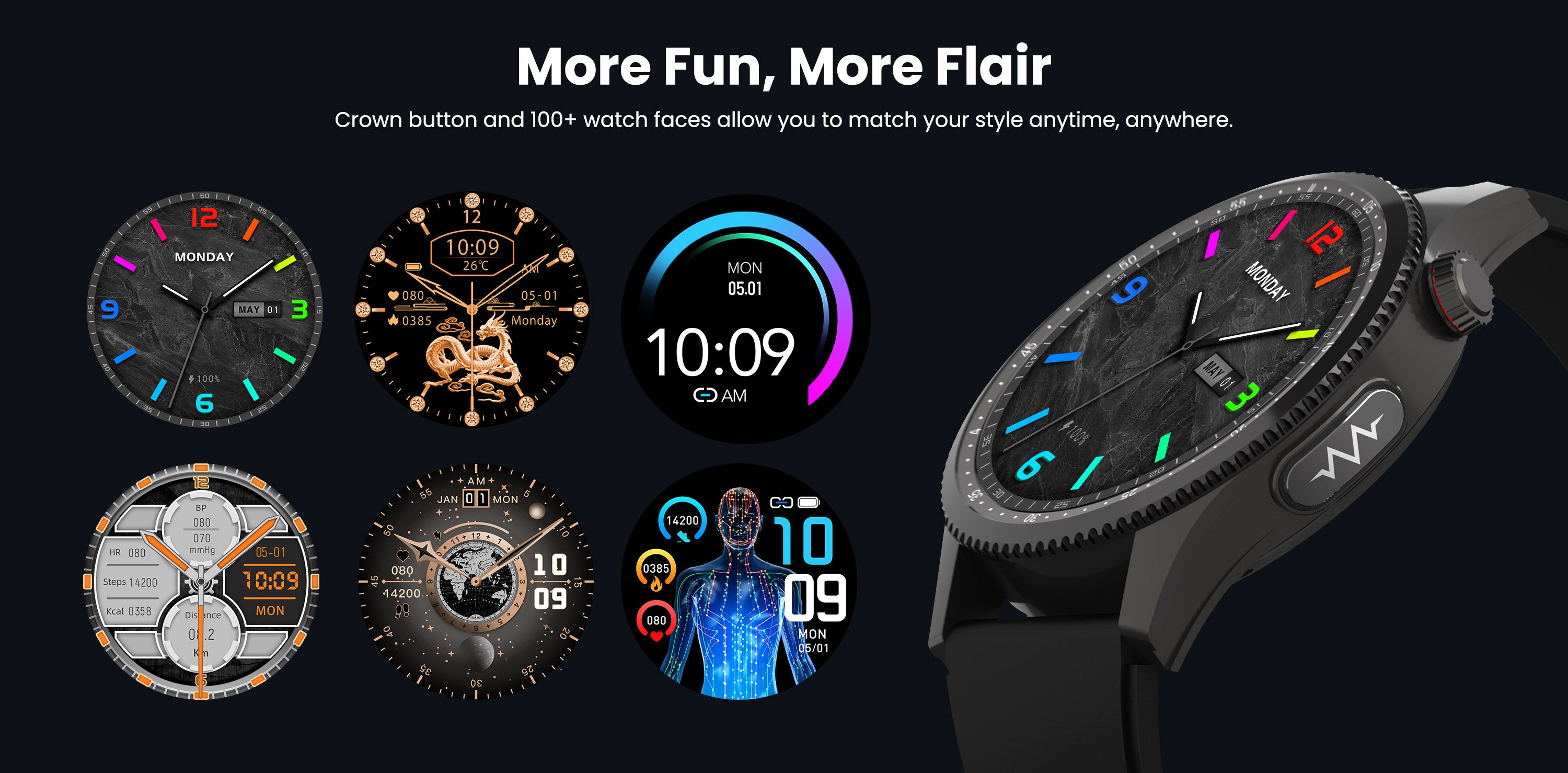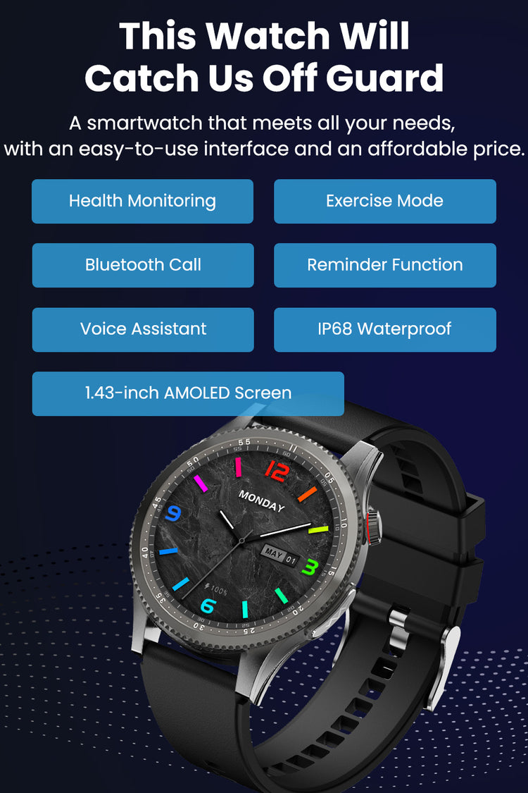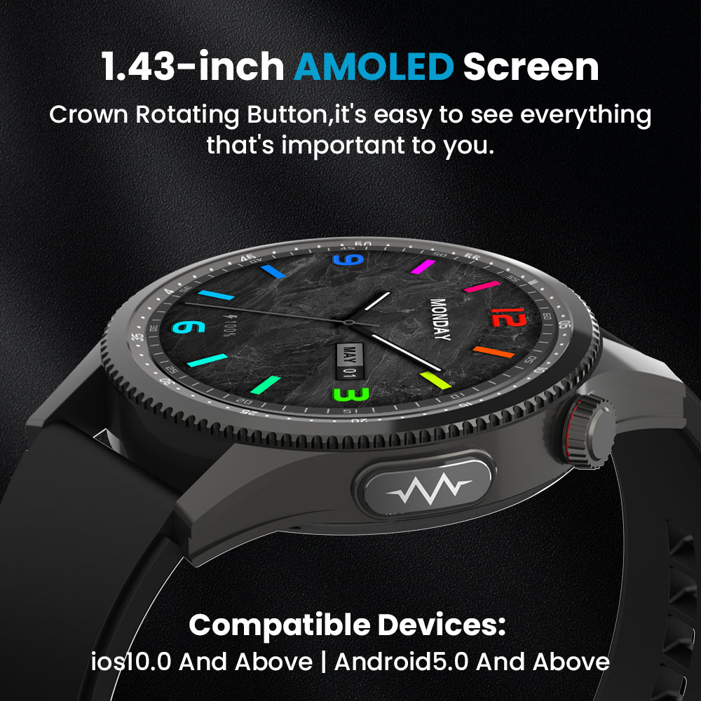 - Screen: 1.43‘ AMOLED round screen Resolution:466*466