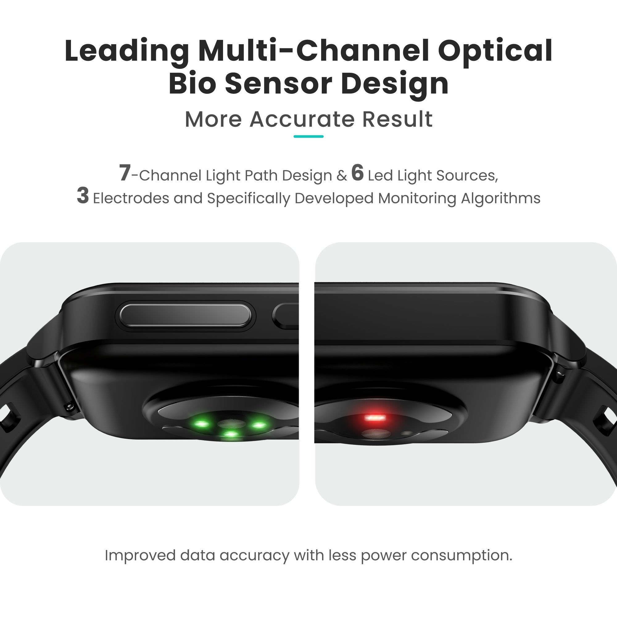 7-Channel Light Path Design & 6 Led Light Sources, 3 Electrodes and Specifically Developed Monitoring Algorithms,This product ensures data precision by combiningMaxim Integrated chips (from top U.s. chip companyADl),OSRAM's German photodetection system, and aspecially customized Fresnel optical lens.