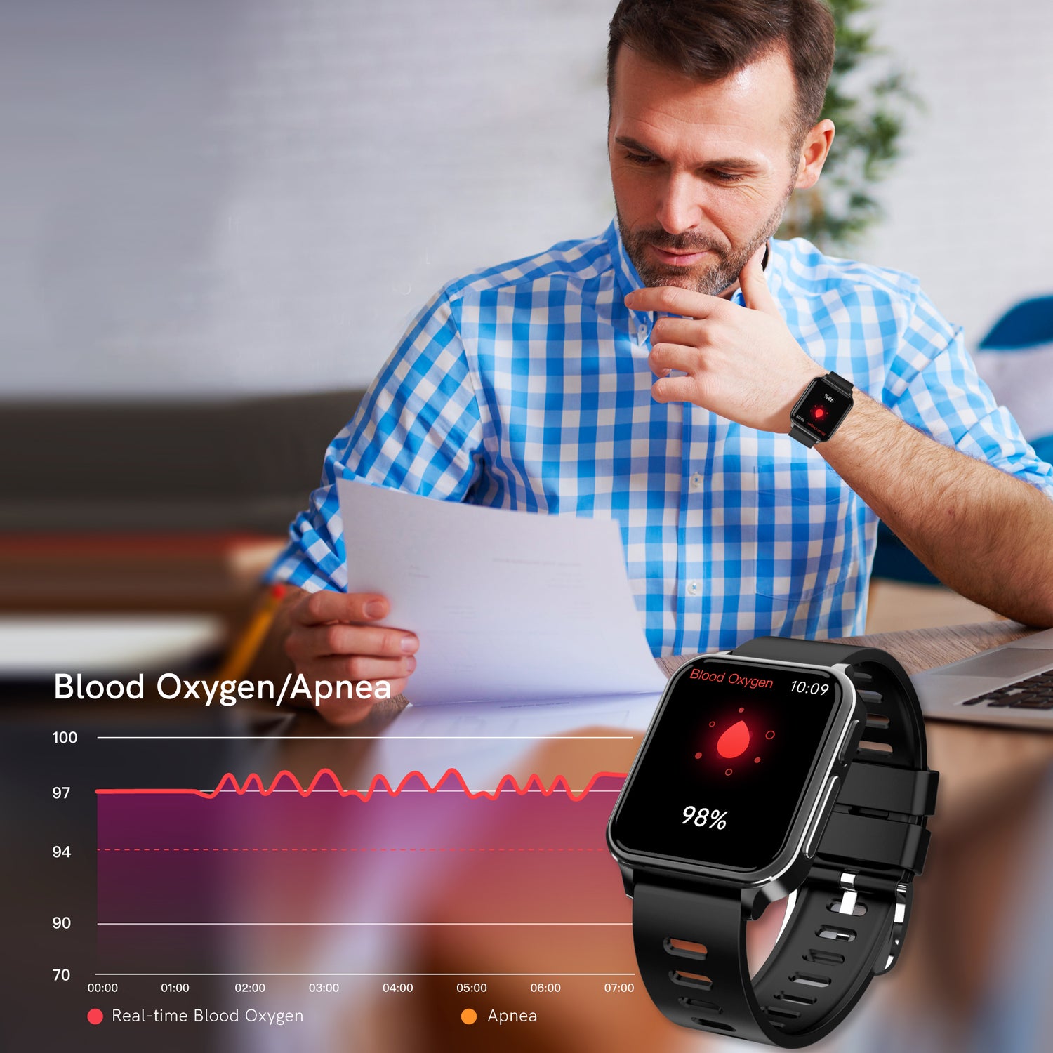 With continuous tracking of blood oxygen, HRV, deepsleep, and heart rate, defend your heart and sleep-backed by data, driven by care.
