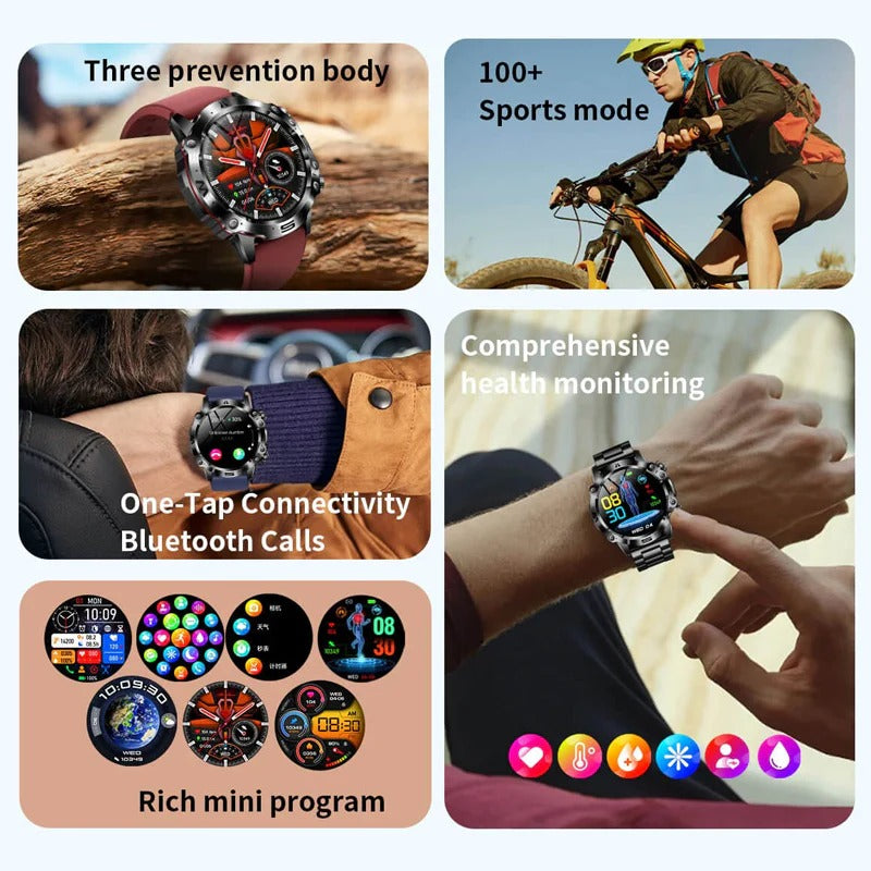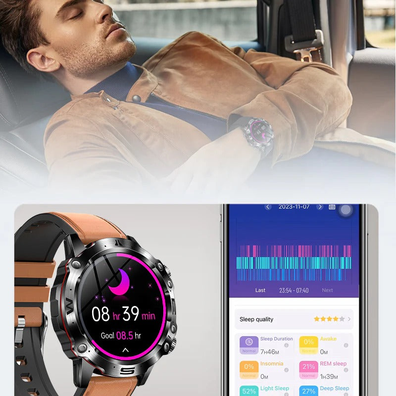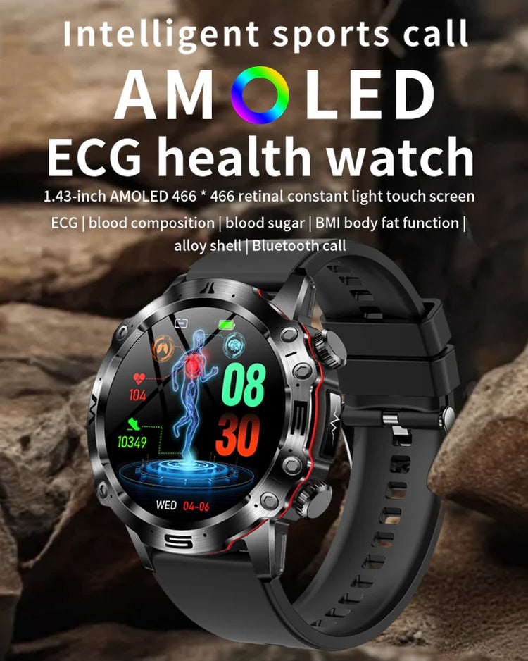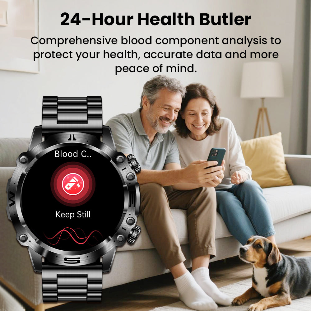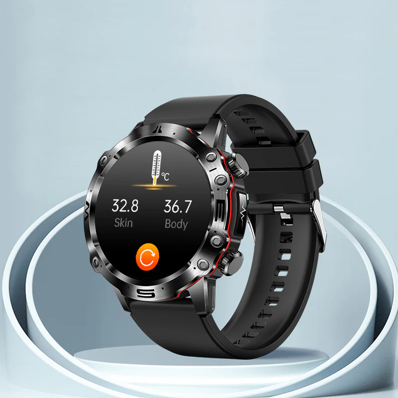 This watch is designed with your well-being in mind, featuring a built-in thermometer that continuously monitors your body surface temperature. It creates a comprehensive report on any changes and gently alerts you if it detects anything unusual. We understand how important it is to take care of yourself, and this watch is here to help you stay informed and safe.