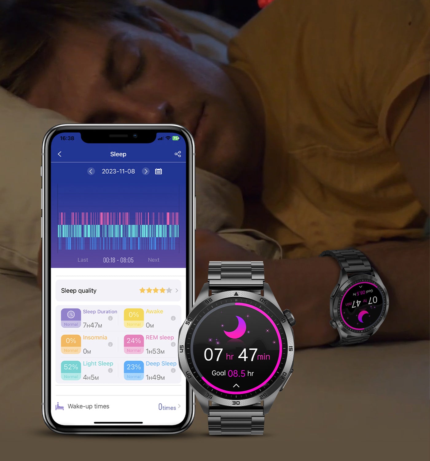Get a good night's sleepSupport night sleep monitoring,deep sleep,light sleep,REM rapid eye movement andother sleep stage structure,identification and analysis of sleep problems.More scientificsleep monitoring,management and improvement,accompany you to sleep at ease.