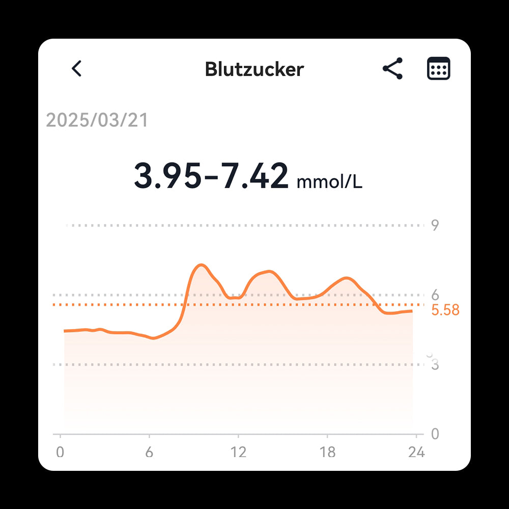 Sie können Ihre Blutzuckerwerte in der App privat halten, um die Genauigkeit Ihrer Ergebnisse zu verbessern. Bitte beachten Sie, dass Sie Ihre aktuellen und genauen Blutzuckerwerte eingeben müssen, damit der Blutzuckerring ordnungsgemäß funktioniert.