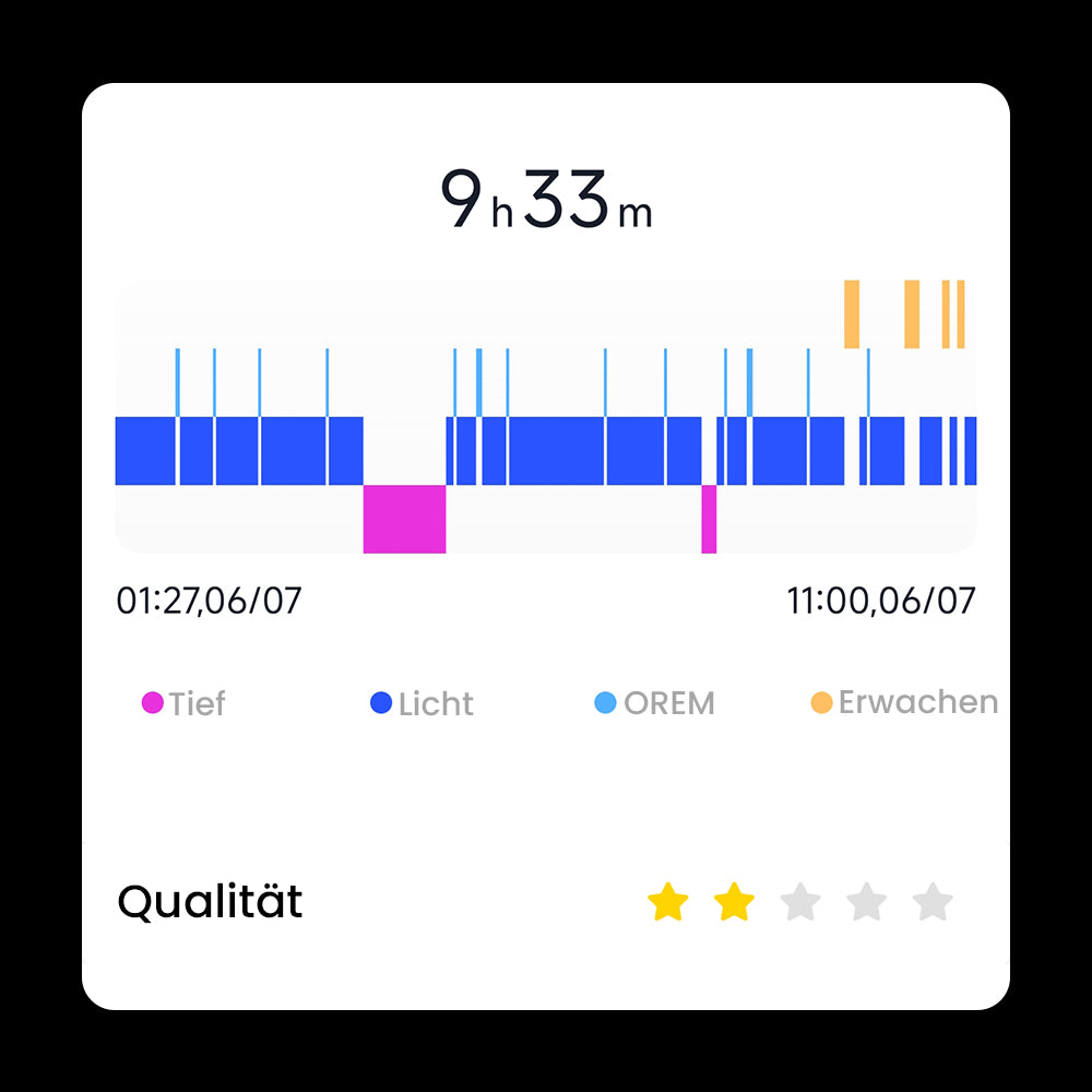 Nach dem Aufwachen erhalten Sie eine detaillierte Analyse Ihres Tiefschlafs, REM-Schlafs und Leichtschlafs der vergangenen Nacht.