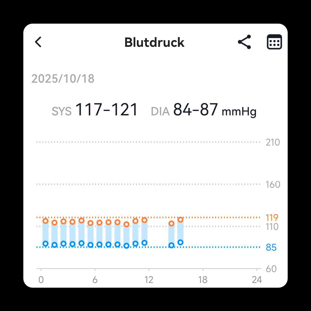 Sie können in der App den privaten Blutdruckmodus aktivieren, um die Genauigkeit Ihrer Messungen zu verbessern. Bitte beachten Sie, dass Sie Ihren tatsächlichen und genauen Blutdruckwert eingeben müssen, damit der Ring ordnungsgemäß funktioniert.