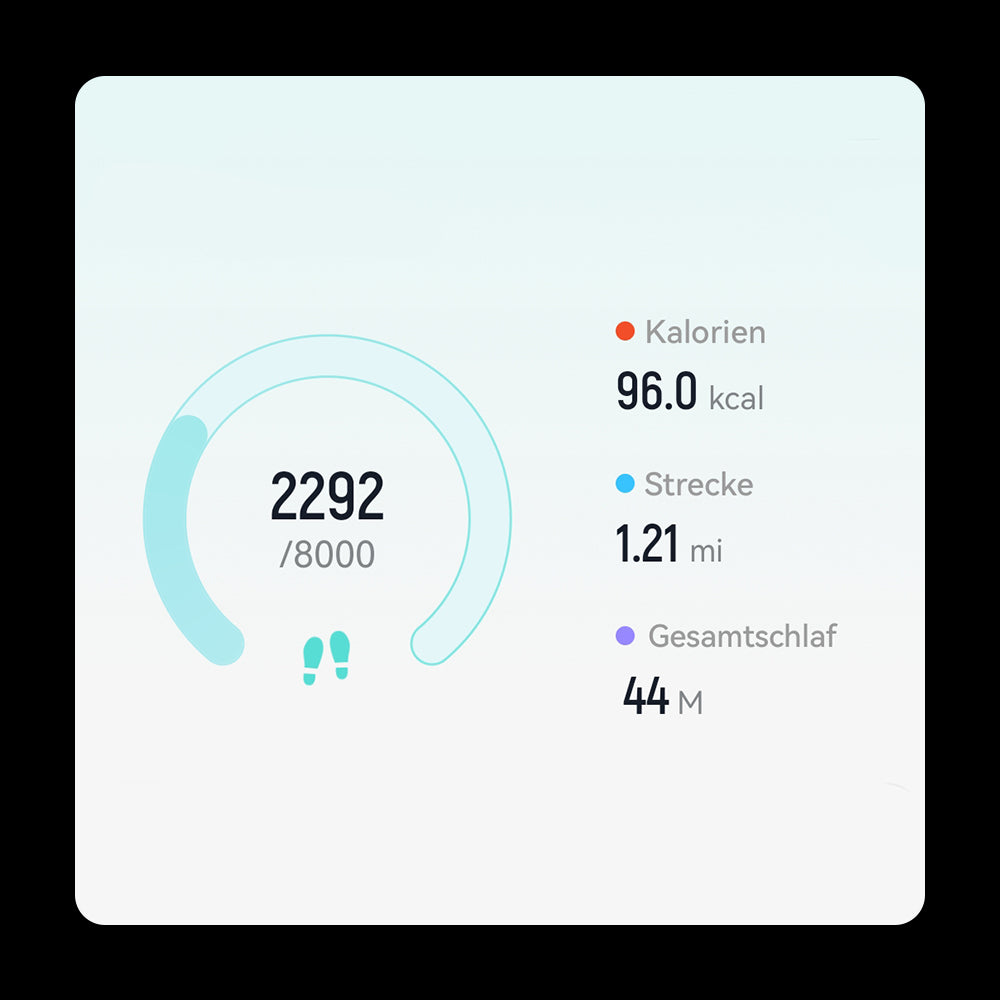 Mehrere Trainingsmodi zeichnen Echtzeitdaten wie Herzfrequenz, Schritte, Distanz, Tempo und Kalorienverbrauch auf, sodass Sie Ihren Trainingsstatus jederzeit verfolgen können.